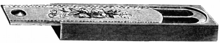 | 14/709. | As cut. Similar to above but with ruling pen. Size of case, 6½ × 2¾ inches | $8 40 |