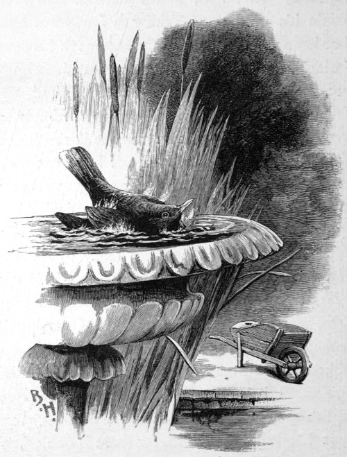 A blackbird proceeded calmly to take his bath in the fountain.—p. 30.
