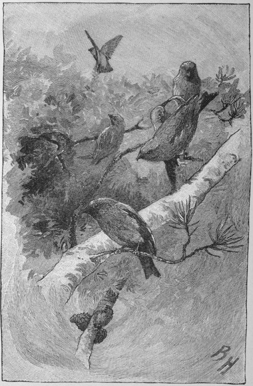 These tiny linnets at work in the delicate birch-boughs.—p. 23.