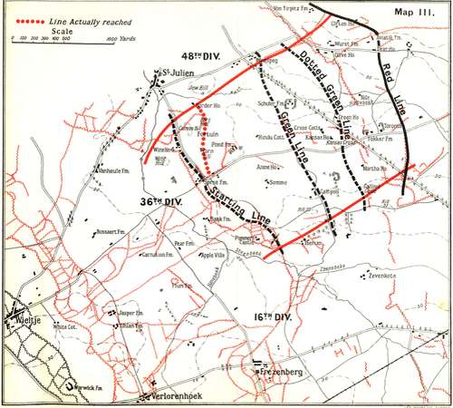 | Plans of the Allies—107th Brigade enters Line—Wieltje Dug-outs—Barrage Plans—Failure of 108th Brigade—The Division's Losses—Causes of Failure—General Nugent's Suggestions. | ||