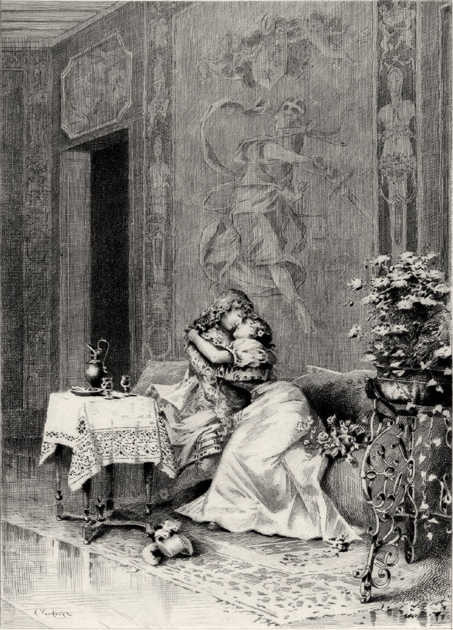 The little one's mother was a rather dissolute woman, who gave card-parties and kept a sort of bureau of wit. People read wretched verses at her house and lost good crowns, which was a compensation.—She cared little for her daughter, who was a living certificate of baptism, so to speak, and embarrassed her in the matter of falsifying her chronology.—Besides, she was growing apace and her nascent charms occasioned comparisons which were not to the advantage of her prototype, who was already a little defaced by the action of years and men. The child was rather neglected, therefore, and left defenceless against the blackguardly habitués of the house.—If her mother had bestowed any attention upon her, it would have been for no other purpose probably than to sell her youth at a good bargain and farm out her beauty and her innocence.—In one way or another the fate in store for her was not doubtful.—That grieved me, for she was a fascinating little thing, deserving surely of something better, a pearl of the fairest water lost in that noxious pest-hole; the idea affected me so strongly that I determined to rescue her from the horrible place at any price.