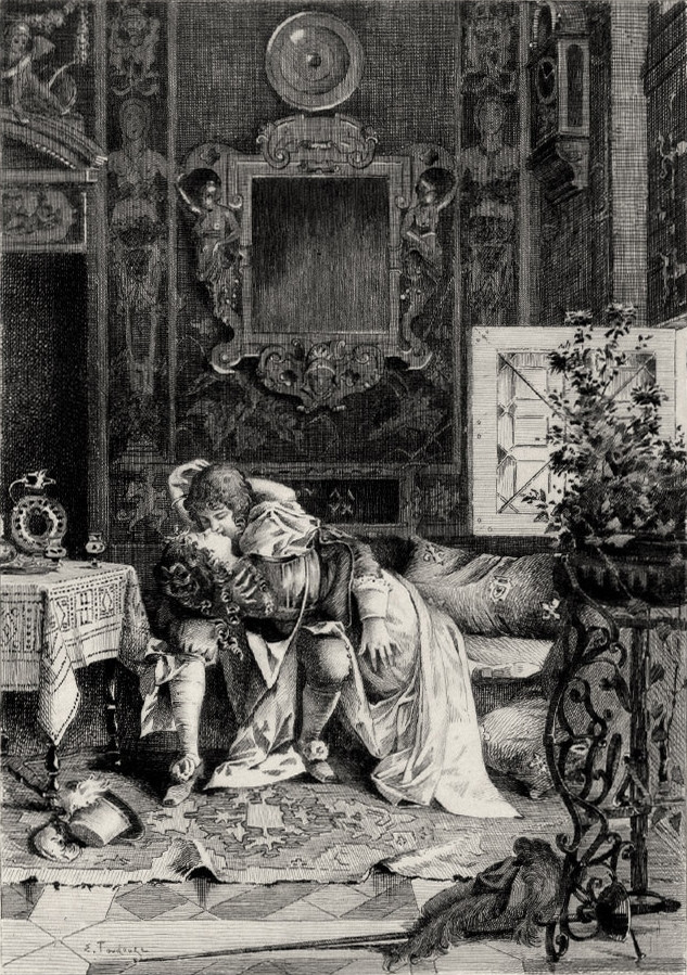 The conclusion of the sentence was stifled by a kiss, succeeded by many others, which they ceased to count and of which we will not undertake to furnish an exact reckoning, because it would certainly be a little long and perhaps very immoral—in the eyes of some people—for, so far as we are concerned, we know of nothing more moral and more sacred under heaven than the caresses of a man and a woman, when both are young and beautiful.