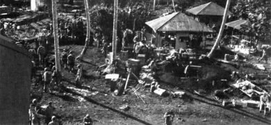 The Japanese struck back hard at the New Georgia invasion force with bombers and fighters. Allied combat air patrols shot down many of the enemy, but some got through to damage Marine positions on Rendova. This area became known as “Suicide Point” after fuel and explosives dumps were hit during the 2 July 1943 raid.