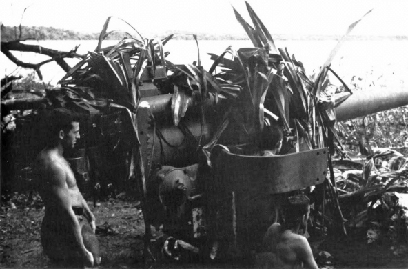 Camouflaged Japanese 140mm naval guns with their ammunition intact were found and put out of action at Enogai by the raiders’ landward attack.
