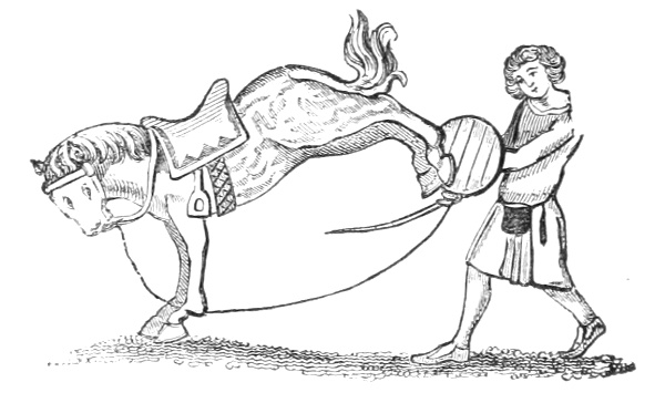 The mere management of arms, though essentially requisite, was not sufficient of itself to form an accomplished knight in the times of chivalry; it was necessary for him to be endowed with beauty, as well as with strength and agility of body; he ought to be skilled in music, to dance gracefully, to run with swiftness, to excel in wrestling, to ride well, and to perform every other exercise befitting his situation. To these were to be added urbanity of manners, strict adherence to the truth, and invincible courage. Hunting and hawking skilfully were also acquirements that he was obliged to possess, and which were usually taught him as soon as he was able to endure the fatigue that they required. Hence it is said of sir Tristram, a fictitious character held forth as the mirror of chivalry in the romance entitled The Death of Arthur, that "he learned to be an harper, passing all other, that there was none such called in any countrey: and so in harping and on instruments of musike he applied himself in his youth for to learne, and after as he growed in might and strength he laboured ever in hunting and hawking, so that we read of no gentlemen who more, or so, used himself therein; and he began good measures of blowing blasts of venery, [16] and chase, and of all manner of vermains; [17] and all these terms have we yet of hunting and hawking; and therefore the book of venery, and of hawking and hunting, is called the Boke of Sir Tristram." In a succeeding part of the same romance, king Arthur thus addresses the knight: "For all manner of hunting thou bearest the prize; and of all measures of blowing thou art the beginner, and of all the termes [Pg xxv] of hunting and hawking thou art the beginner." [18] We are also informed, that sir Tristram had previously learned the language of France, knew all the principles of courtly behaviour, and was skilful in the various requisites of knighthood. Another ancient romance says of its hero, "He every day was provyd in dauncyng and in songs that the ladies coulde think were convenable for a nobleman to conne; [19] but in every thinge he passed all them that were there. The king, for to assaie him, made justes and turnies; and no man did so well as he, in runnyng, playing at the pame, [20] shotyng, and castyng of the barre, ne found he his maister." [21]