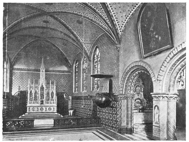 The left-hand road leads to the bridge over the Handzaeme Canal, one of the most picturesque parts of Dixmude. Close by, to the left of the road, stood the Béguinage, comprising some twenty houses grouped around a small chapel, and a fine garden. The place is now overrun with weeds.