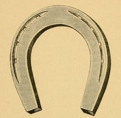 Another plan is to make from rolled bar iron, a hollow shoe, section of which would be U-shaped but level to the foot. Into the groove so formed a thick cord of rubber is placed after the shoe is nailed on the foot. This wears well and affords good foot-hold but it entails the serious objection that the nails are difficult to drive and far from being so safe as in the ordinary shoe. If rubber is ever to be available in a grooved shoe it should be designed so that the nails and nail holes are not interfered with.