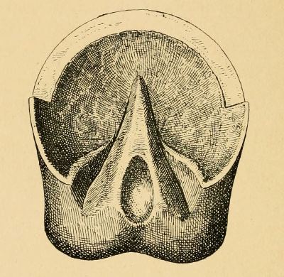 The prominence of the frog might lead a superficial observer to consider it a thick solid mass; and I believe this mistake is the cause of its too frequent mutilation. It is merely a layer of horn following the outline of the structures within, which are similarly prominent and irregular in surface. (Figs. 9 and 10). The diagrams show a section through the point and through the cleft of the frog.