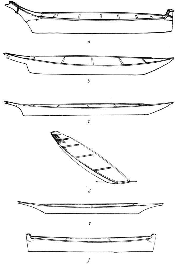Concerning the distribution, in a northerly direction, of these types of canoes, little can be said at the present time. As remarked above, the Kwakiutl use in place of the αο´τχς, a great sea-going canoe of somewhat different and more complicated model, and much more elaborately ornamented.