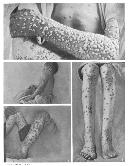 While many articles on variola have been illustrated by a few photographs of cases, mostly of the pustular type, this work is believed to be the first which has presented illustrations of the smallpox eruption in each of its successive stages. It is sincerely hoped that the reader will find it of service in familiarizing him with the peculiar features of the disease.