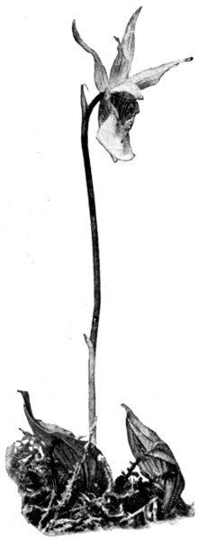 Our attention finally came to the quiet beauty of the surrounding vegetation, where among the scattered skirmishers of the forest are flowering shrubs, and in the more open grassy places forming the swampy borders of the lake, are many bright flowers. The white mountain anemones in several varieties, the familiar violets, the yellow columbine with beautiful pendent blossoms claiming relationship to its Eastern cousin with scarlet flowers, the fragrant spiranthes, and orchids with pale-green flowers, resembling insects on a leafy stem, may all be seen in profusion near the north side of the lake. These humble herbs, with their gaudy coloring, are the growth of a single season, but on all sides are copses of bushy plants which endure the long winter, some of them clad in a garb of evergreen and, like the annual plants, bearing elegant floral creations. The most conspicuous is the sheep laurel, a small bush adorned with a profusion of crimson-red flowers, each saucer-shaped, hanging in corymbs among the small green leaves. Various shrubs with white flowers, some small and numerous, others large and scattered, make a contrast to the ever present laurel, while the most beautiful of all is a species of mountain rhododendron, 20 a large bush, the most elegant among the mountain heaths, with large white flowers in clustered umbels. In early July this bush may be found, here and there, scattered sparingly in the forest in full blossom at the level of Lake Louise, but after this one must seek ever higher on the mountain side as the advancing summer creeps to altitudes where spring is later.