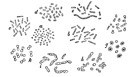 If a large number of fermentations begin with the presence of Bacteria as the only living things, and if in a number of cases no other organisms ever occur, it is useless to adduce as evidence, in proof of the view that fermentations are always initiated by air-derived organisms, the fact that certain corpuscles (supposed to be spores of fungi) are recognizable in the atmosphere—capped by the distinct statement19 that Bacteria or their germs are not recognizable. If Bacteria are not recognizable in the atmosphere, what scientific evidence is there that the fermentations in which these alone occur are initiated by Bacteria derived from the atmosphere, or from certain imaginary Bacteria germs,20 which we are supposed to be unable to distinguish? M. Pasteur may, moreover, be reminded that when he resorts to the supposition of Bacteria possessing “germs” which are indistinguishable, he is again resorting to hypothesis rather than to fact, in order to prove the truth of the particular doctrine of fermentation which he advocates. Bacteria are known to reproduce and multiply only by a process of fission; each of the parts into which they divide being nothing more than a part of the original Bacterium, and therefore endowed with similar properties of resisting heat, desiccation, and other agencies. Any resort to invisible germs to account for the multiplication of Bacteria, which are known to reproduce freely in other ways, is obviously not permissible, unless such postulation be more or less necessitated by the occurrence of facts otherwise inexplicable.