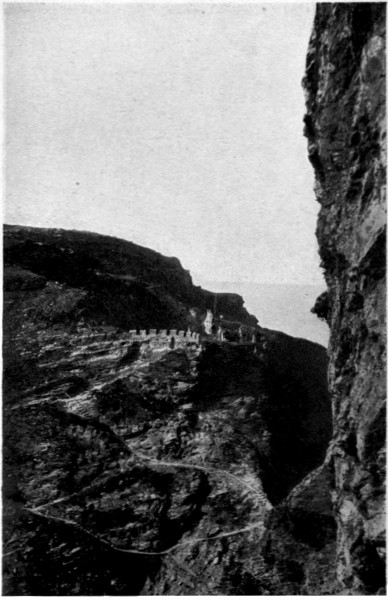 [17] It is difficult to understand how a writer like the late Mrs. Craik could ever have fallen into this error. In her Unsentimental Journey through Cornwall she makes every effort to prove that the building on the mainland was the castle of Terabyl, and she insists that there were (and are) two castles at Tintagel. “One sits in the sea, and the other is upon the opposite heights of the mainland, with communication by a narrow causeway. This seems to confirm the legend, how Igraine’s husband shut himself and his wife in two castles, he being slain in the one, and she married to the victorious king Uther in the other.” It is obvious that the writer of these lines was unacquainted with Malory.