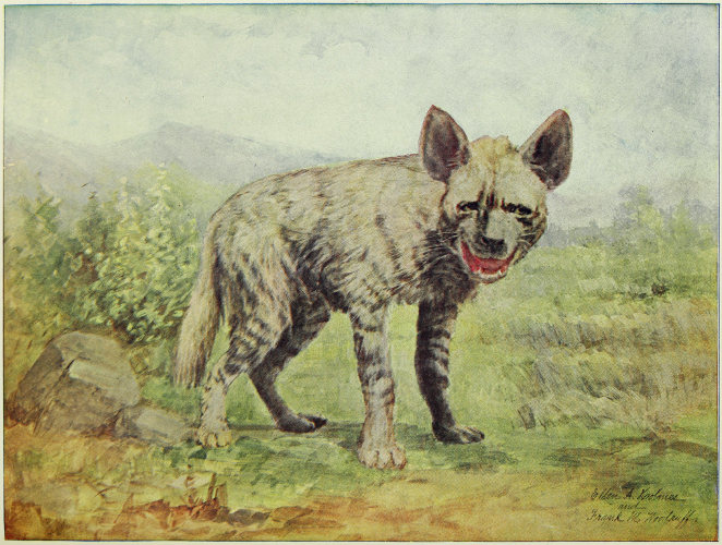 In length she was about four feet four inches and she was covered with a dull yellowish woolly fur. Her face was quite brown, which proved that she was still young, for the face grows dark gray in old age. In examining the forepaw, in order to find a thumb, nothing was there except a short stub devoid of a nail; her nose was broad and flat and she had thirty-six teeth.
