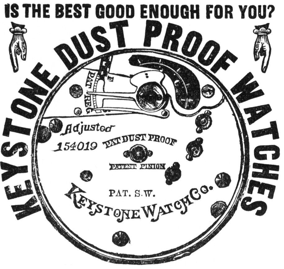 BECAUSE They contain everything essential to Accurate Time Keeping found in any watch, and in addition have the following important patented improvements, which appear only in Keystone Watches: