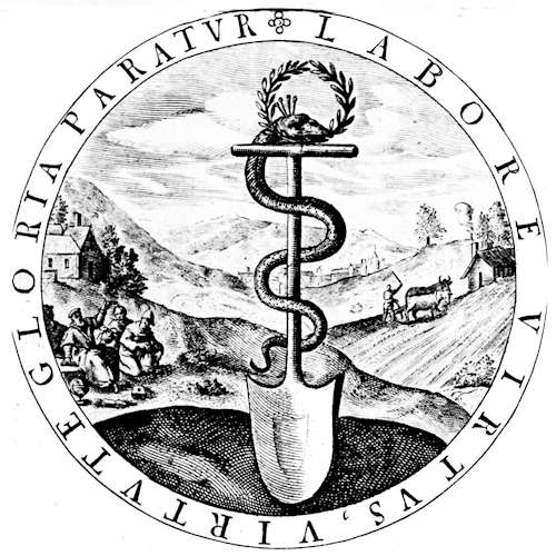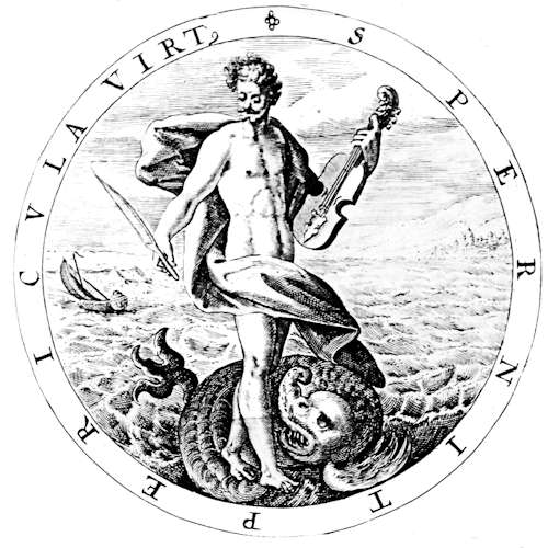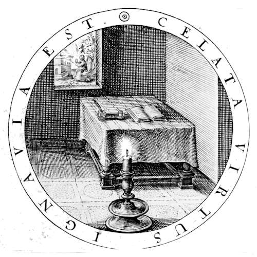 | Ill 12 Bk 3 | VIRTUTE AC STUDIO PER ORBEM FAMA PERPETUA COMPARATUR. Virtute ac studio per orbem fama perpetua comparatur By virtue and zeal everlasting worldwide fame is obtained |