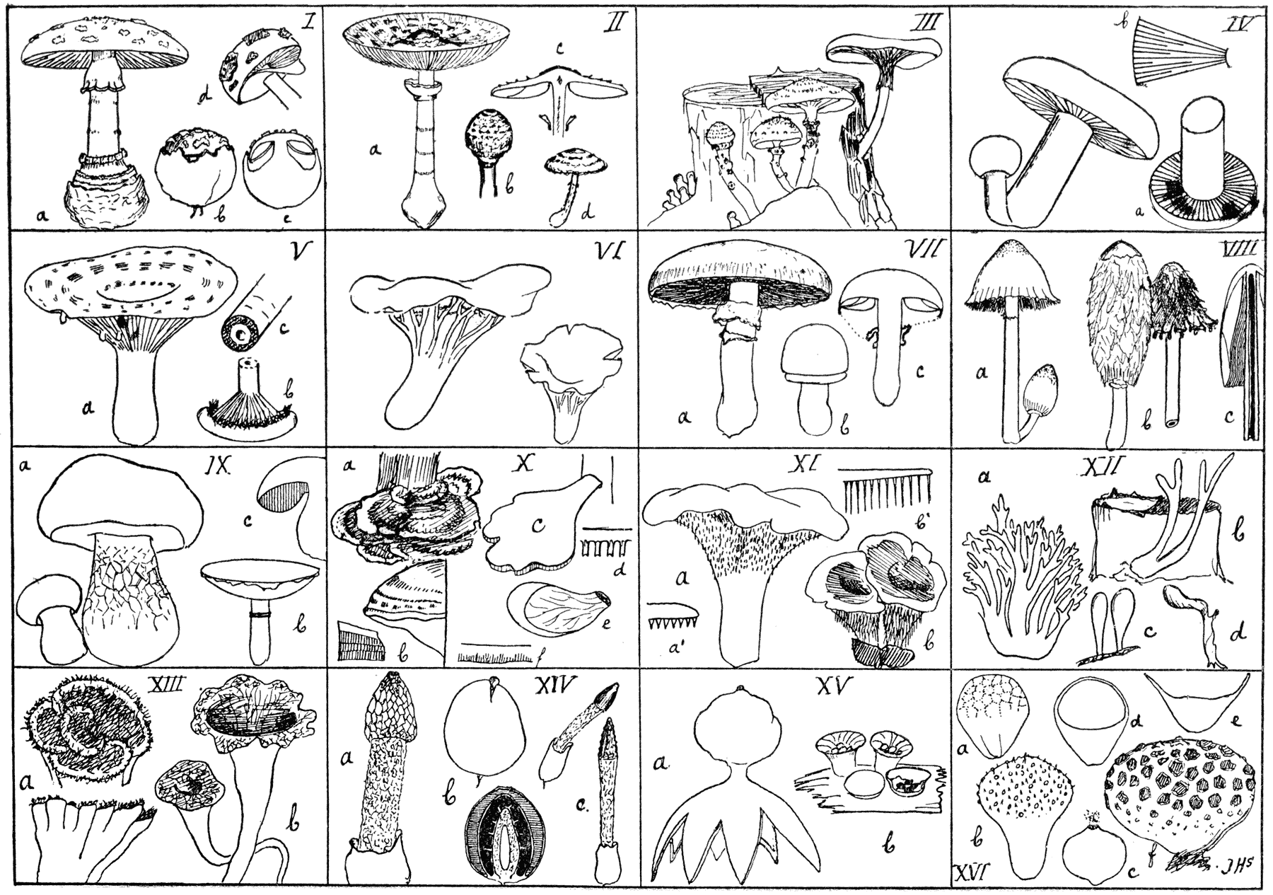 Ik heb een zeer knap geleerde gekend, die zich ook veel met paddenstoelen bezig hield en die graag de stelling verdedigde, dat paddenstoelen in ’t geheel geen planten zijn, maar gansch andere wezens. “Dieren, planten en paddenstoelen,” zei deze—“alle goede dingen gaan in drieën.” Nu zijn dat van die questies, waar je lang over kunt vechten; zoo zijn er menschen, die zeggen, dat sponzen geen dieren zijn; die zeggen dus: planten, sponzen en dieren—en als het nu in drieën móét, dan voel ik meer voor het laatste, want m.i. staat het wel volkomen vast, dat paddenstoelen plantaardige organismen zijn, zij ’t ook van een bijzonderen aard.