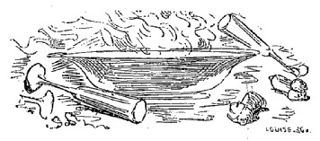 Je fis trois fois le tour du cratère,—dont vous pouvez avoir une idée en vous figurant un immense entonnoir,—et reconnaissant que j'aurais beau tourner, cela ne m'avancerait guère, je pris bravement ma résolution, et je me décidai à sauter dedans. A peine eus-je exécuté le saut, que je me sentis comme plongé dans un bain de vapeur brûlante; les charbons ardents qui jaillissaient sans relâche endommagèrent et brûlèrent en tous sens mon pauvre corps.