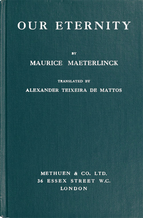 That is where we stand. For us, death is the one event that counts in our life and in our universe. It is the point whereat all that escapes our vigilance unites and conspires against our happiness. The more our thoughts struggle to turn away from it, the closer do they press around it. The more we dread it, the more dreadful it becomes, for it but thrives on our fears. He who seeks to forget it has his memory filled with it; he who tries to shun it meets naught else. It clouds everything with its shadow. But though we think of death incessantly, we do so unconsciously, without learning to know death. We compel our attention to turn its back upon it, instead of going to it with 5uplifted head. All the forces which might avail to face death we exhaust in averting our will from it. We deliver death into the groping hands of instinct and we grant it not one hour of our intelligence. Is it surprising that the idea of death, which should be the most perfect and the most luminous of ideas—being the most persistent and the most inevitable—remains the flimsiest and the only one that is a laggard? How should we know the one power which we never look in the face? How could it have profited by gleams kindled only to help us escape it? To fathom its abysses, we wait until the most enfeebled, the most disordered moments of our life arrive. We do not think of death until we have no longer the strength, I will not say, to think, but even to breathe. A man returning among us from another century would have difficulty in recognizing, in the depths of a present-day soul, the image of his gods, of his duty, of his love or of his universe; but the figure of death, when everything has changed around it and when 6even that which composes it and upon which it depends has vanished, he would find almost untouched, rough-drawn as it was by our fathers, hundreds, nay, thousands of years ago. Our intelligence, grown so bold and active, has not worked upon this figure, has not, so to speak, retouched it in any way. Though we may no longer believe in the tortures of the damned, all the vital cells of the most sceptical among us are still steeped in the appalling mystery of the Hebrew Sheol, the pagan Hades, or the Christian Hell. Though it may no longer be lighted by very definite flames, the gulf still opens at the end of life and, if less known, is all the more formidable. And, therefore, when the impending hour strikes to which we dared not raise our eyes, everything fails us at the same time. Those two or three uncertain ideas whereon, without examining them, we had meant to lean give way like rushes beneath the weight of the last minutes. In vain we seek a refuge among reflexions that are illusive or are strange to 7us and do not know the roads to our heart. No one awaits us on the last shore where all is unprepared, where naught remains afoot save terror.