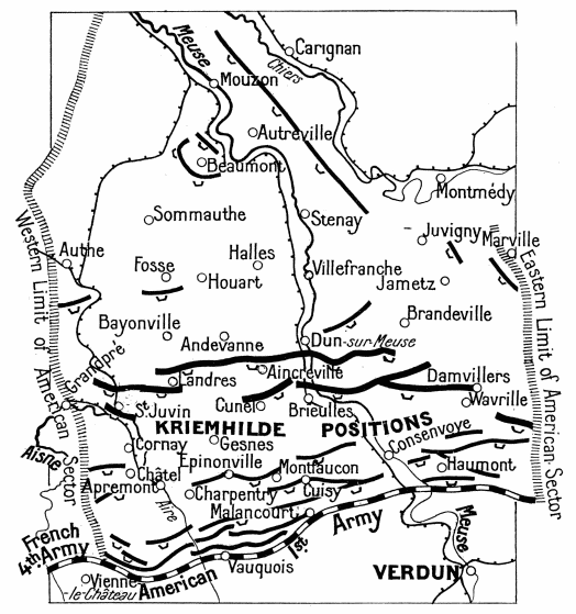 THE present volume—No. 3 of the series: “The Americans in the Great War”—see Volumes 1 (“The Second Battle of the Marne”) and 2 (“The Battles of St. Mihiel”)—deals with the Argonne proper and with the Marshes of the Argonne, that is to say, the greater part of the country lying between the Battlefields of Champagne and Verdun, described in the Michelin Guides: “The Battles of Champagne” and “Verdun.”