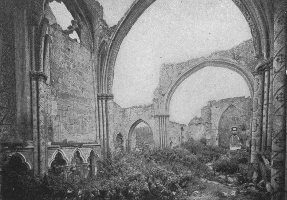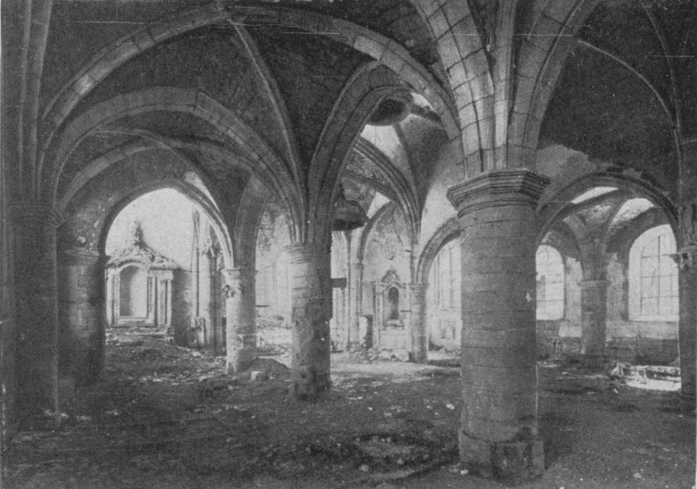 The Gothic nave is large and high, the springing of the vaults resting on sculptured capitals. Fragments of old stained-glass, still to be found in some of the windows before the war, were destroyed by the bombardments.