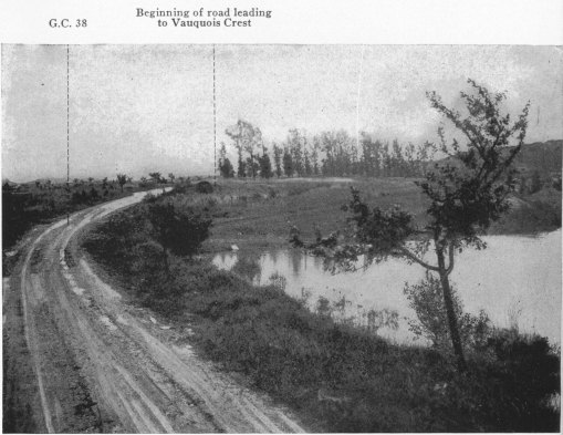 For almost a year the struggle on this line continued with unabated desperateness. It is impossible to enumerate here all the battles fought almost daily in the sectors of Fontaine-aux-Charmes, Bagatelle, Marie-Thérèse, Fontaine-Madame, St. Hubert, Four-de-Paris, Les Meurissons, Bolante Wood, Courte-Chausse and Haute-Chevauchée. The most important are referred to later, in the Itinerary. On the whole, the French troops, with whom the Garibaldian Regiment co-operated for a short time, made some progress and inflicted bitter defeats on the enemy. To the east, in the Valley of the Aire, though they failed against Boureuilles, they succeeded in March, after numerous attacks, in taking Vauquois.