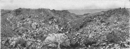 The road goes round the hill, passing a succession of shell-craters on the crest.