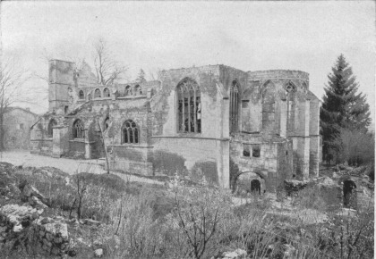 These picturesque spots have often charming names: Bois de la Viergette, Ruisseau des Emerlots, Fontaine la Houyette, Fontaine-aux-Charmes, Fontaine-Madame and Bagatelle. Sometimes the names are quaint: Fille-Morte, Moulin del’Homme Mort, Ferme-la-Mitte, Chêne Tondu and Courte-Chausse. Below the long ridge, which forms, as it were, the backbone of the forest, the Chemin de la Haute-Chevauchée, and, a little further west, the Pavillon St. Hubert evoke memories of bygone hunting-parties. All these names, yesterday but little known, are to-day famous, as for months they recurred almost daily in the Communiqués of the Great War, and each of them brings to mind, not one battle only, but a series of battles, fierce struggles, and hand-to-hand encounters in the dense undergrowth.