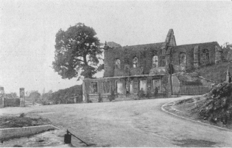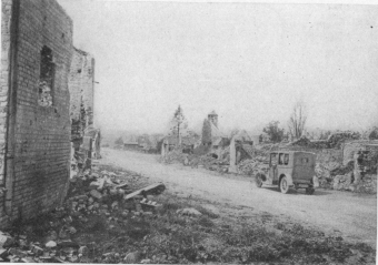 Take the small path which first runs alongside a stream, then climbs towards Gruerie Wood, for 500 yards, to see the battlefield. The wood, which was hacked to pieces by the shells, contains numerous defence-works of all kinds, and makes an impressive sight. Further along the road are the German front lines.