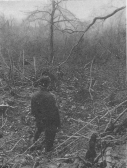 After visiting Gruerie Wood, return to and proceed along G.C. 67. The road passes beside two large French cemeteries, then a row of dug-outs. The forest becomes more and more denuded of trees, which were smashed by the shells. The site of Four-de-Paris is soon reached, though not a trace of the village remains (photo, p. 104). Four-de-Paris is 2 km. from La Harazée.