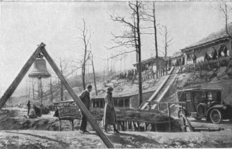 Gruerie Wood, which the poilus called “Tuerie Wood” (Slaughter Wood), was one of the most active and dangerous sectors on the Western front from September, 1914, to the end of 1915. The conditions of warfare there were particularly trying. Attack followed attack almost without a pause, generally preceded by mine explosions, and often developing into ferocious hand-to-hand struggles. In this wood, sectors like the Pavillon de Bagatelle, and the valleys of the Fontaine-aux-Charmes and Fontaine-Madame, were the most fiercely contested.