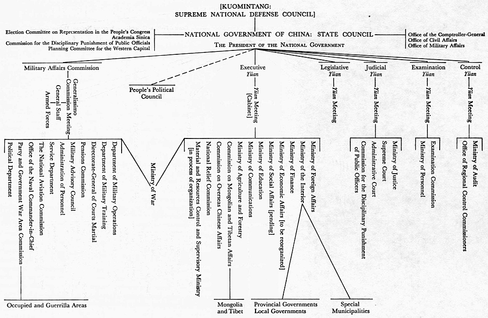 Kuo-min Chêng-fu Wei-yüan-hui 國民政府委員會 "National Government Council"; commonly termed Council of State, this is the highest strictly governmental agency in China