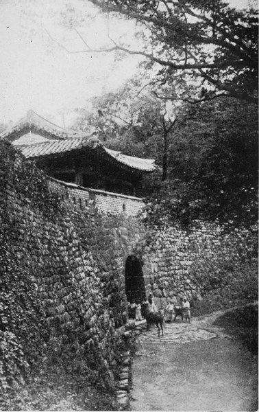 We approached Seoul about four o’clock in the afternoon, and I was thrilled at the sight of the first walled town I had ever beheld. The walls are very picturesque—built of great blocks of stone—hung with ivy, and give an impression of great age.
