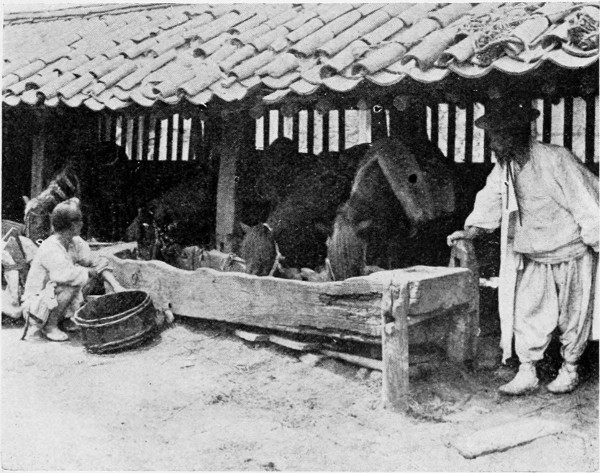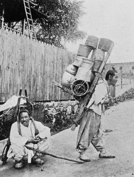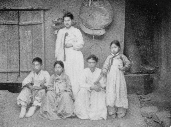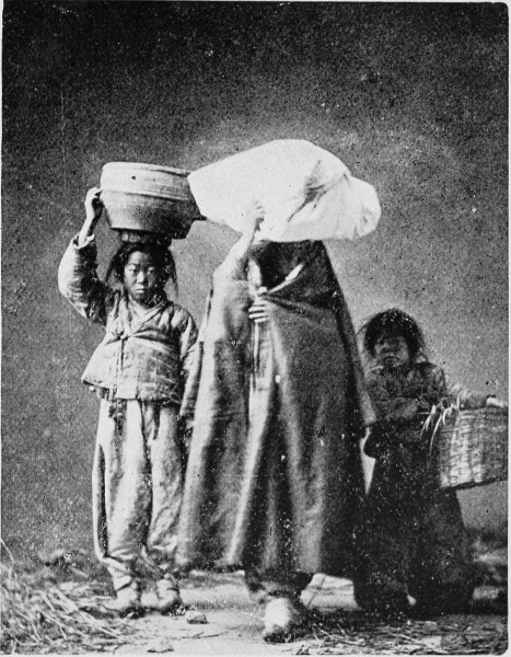 The common people are very poor and their homes seem to an American wretchedly poor and comfortless, and yet, compared with the most destitute of London or New York, there are few who go cold or hungry in Seoul. Each dwelling is so arranged that the part of the house occupied by the women, which is called the anpang, or inner room, shall be screened from sight from the street and from those entering the gate—for every house has at least a tiny courtyard, part of which is also screened off (either by another wall, or by mats, or trees and bushes) for the women’s use.
