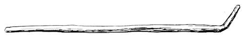 The casting of wooden darts, or arrows, is another boys’ game of the same general type. The set of darts in the collection contains twelve willow sticks about a meter long and 1.8 cm. in diameter. Each stick is sharpened at one end and split into quarters at the other, Fig. 12. These darts are usually decorated and to some are attached tufts of horse hair. In the game the darts are thrown from the hand. First one is cast into a clump of bushes and the players in turn cast at it as a target. The last throw wins the darts. The use of the hair tufts was explained as an aid to the count; thus, if several darts fell about equally near the target dart, the one whose hair tuft touched it was declared the winner.