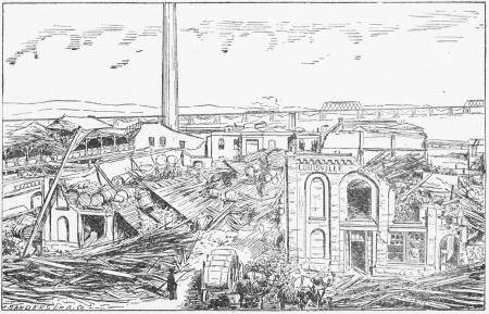 | The dam system of India—American “cheap goods and haste"—The Little Conemaugh Valley—Heavy rains—Johnstown flooded—The artificial lake—A poor dam—No uneasiness—How the water would move—The dam breaks—Terrible rush of the flood—An engine chased—A warning whistle—Locomotives hurled about like toys—Flying for life—Escapes and losses | 324 |