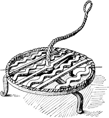 [93] Hiernach sind meine Angaben im Jahrg. 1900 S. 136 zu berichtigen. Ich glaubte damals noch, das Gerät, das ich inzwischen als Ständer für die Kaffeebrenntrommel erkannt habe, für eine besondere Art von Bratspießständer halten zu müssen.