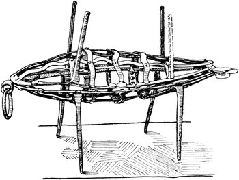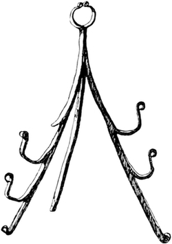 [106] Auch für England, wo der Feuerbock spät eingedrungen ist (s. o. Jahrg. 1900 S. 183) scheint sich meine Annahme zu bestätigen. Wright, a. a. O. S. 451 sagt folgendes: »John Hedge, a large householder...« in 1504, speaks of »spytts, rakks, cobernys, aundernnys, trevettes, tongs, with all other iryn werkes moveabyll within my house longying.« »This would seem to show that cobirons and andirons were not identical, and it has been supposed that the former denomination belonged more particulary to the rests for supporting the spit.« Diese Trennung von cobiron = Bratspießlager und andiron = Feuerbock mag bestehen bleiben oder nicht, jedenfalls lese ich soviel aus Wright’s Worten heraus, daß derselbe auf Grund seiner Kenntnisse des englischen häuslichen Lebens einen Bratbock als eigenes Gerät voraussetzt, und daß demnach der englische Feuerbock nicht adaptiert ist.