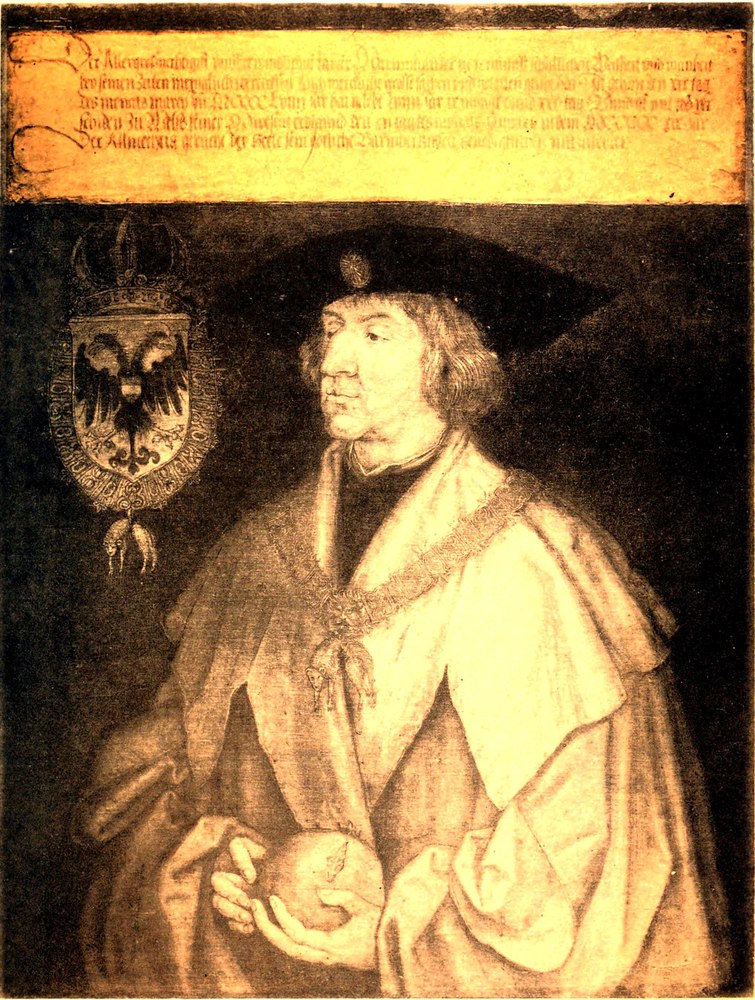 [141] Es heißt dort: S. Eye, Leben und Wirken Albrecht Dürers, Übersichtstafel des Besitzstandes der bedeutendsten Dürer’schen Arbeiten in der Imhofschen Sammlung (am Schluß des Buches) im Verzeichnis Willibald Imhofs d. Ae. 1573–1574: Nr. 8 Keyser Maximilian der Erst wasserfarb hat Albrecht Dürer gewislich gemalt fl. 8. Im Inventar von W. Imhofs d. Ae. Erben, 1580: Nr. 8 Ihem Keyser Maximilianus der ersto von Wasserfarben Albrecht Dürers Hanndt umb fl. 8. In dem 1588 an Kaiser Rudolf II. von denselben geschickten Verzeichnis: Nr. 16. Ihem Kaiser Maximilianus von Wasserfarben.