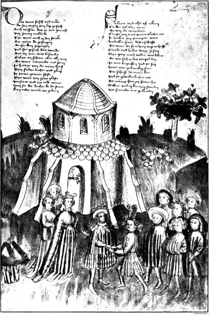 [129] Auf dem Bild des Historiographen Maximilians, Cuspinian nebst seiner Familie im Berliner Museum.