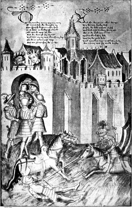 [147] Abbildungen der Rüstungen dieses Codex finden sich in Essenwein’s Die Helme aus der Zeit vom 12. bis zum Beginne des 16. Jahrhdts. im german. Museum. Nürnberg 1892. Fig. 29, 50, 68.