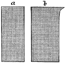 A “nappie” dish, oval in form, and resembling Fig. 17, may be made from Fig. 16, by simply raising up the sides a and b. By pressing the paper inward, Fig. 18 is obtained. Fig. 19 is made by drawing the paper out again, and letting it loose at the end. Thus you see, by pulling out some parts and drawing in others, a quantity of things could be made other than these I have shown. It would be quite interesting if every boy and girl who reads this, would try on some rainy day to see how near to the sixty-five he or she could come. If two or three friends in the same neighborhood should unite their 331forces, and count all which are unlike, without reference to the maker, they might not fall so far short of the illustrious Japanese—I wish I could remember his name—after all.