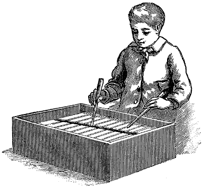 First procure a soap-box, the best and tightest you can find: if any cracks are too wide to be easily closed with putty, nail laths over them on the inside, line their edges, and, in fact, stop every seam and crevice with good thick 55layers of putty. Next paint over the entire inside with any colored pigment you may have, as it does not show when the box is filled with earth, but simply aids in making it water-tight.