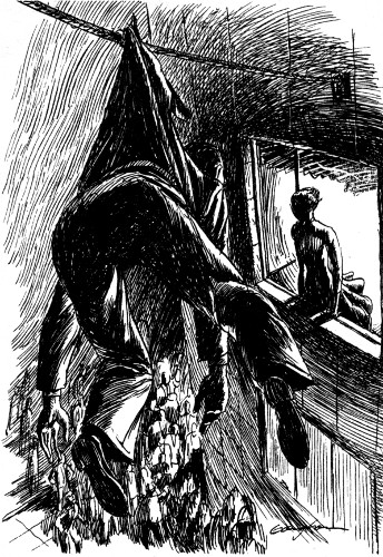 By now, the maelstrom was directly over me and my talisman was caught in the up-draught. It did not fall, but I did. After a sickening instant, I was brought up with a jerk that nearly strangled me. The back of my coat had caught on the projecting wire and I swung there like an unused marionette.