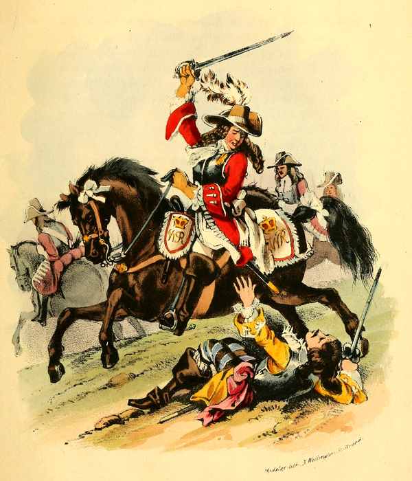 [11] The Princess Anne's regiment was formed of independent troops of horse raised in June, 1685, and the Colonelcy conferred on the Earl of Scarsdale, who was succeeded, on the 1st of December, 1687, by Charles, Duke of St. Alban's. This regiment was remarkable for being one of the first corps which joined the Prince of Orange in November, 1688; having been conducted to His Highness's quarters by the Lieutenant-Colonel, Thomas Langston, who was immediately promoted to the Colonelcy of the regiment, and his brother, Captain Francis Langston, of the Royal Dragoons, was promoted to the Lieutenant-Colonelcy. Colonel Thomas Langston died of a fever at Lisburn, in Ireland, in December, 1689, and the Colonelcy of the regiment was conferred on his brother Francis. This regiment served at the battles of the Boyne and Aghrim in Ireland, and at Steenkirk in the Netherlands; but having lost many men and horses, the remainder were transferred to other corps, and the regiment was taken off the establishment of the army in the autumn of 1692. The officers served en seconde until vacancies occurred in other regiments.