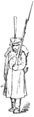 “A veteran Chasseur,” says the same author, “who had wrapped his frost-bitten extremities in strips of sheep-skin, sat down by our fire. He cursed the name of the Emperor Alexander, and he cursed Russia and all the saints; then he asked whether any brandy had been served out. When he heard the answer—‘No, none has been served out, and none will be,’ he exclaimed—‘Well, there is but one thing left, and that is death!’