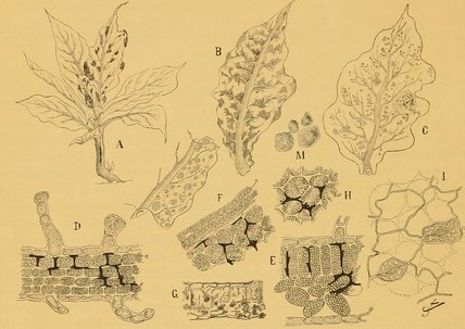 [J] Als Bemerkung möchte ich hier hinzufügen, dass die veredelten Sorten von Beta vulgaris nicht selten dunkelgrüne Flecken in den Blättern zeigen mit den nämlichen Abweichungen, wie bei Nicotiana Tabacum beschrieben ist. Der Saft dieser gefleckten Blätter konnte normal gebildete Exemplare von Beta vulgaris nicht krank machen. Das Auftreten dieser Flecken ist also von ganz verschiedener Art wie bei Nicotiana Tabacum.