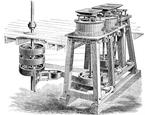 Gentlemen:—New Year’ day, and feeling grateful to you for the complete mill machinery you furnished us, we send you our thanks in the shape of an acknowledgment of the same, and hope that all mills you may put up hereafter may prove as satisfactory as ours. Our mills are two buildings—one for sawing and one for the flour mill. We have two run of burrs, one for wheat, 36 inches, on which we can grind from eight to twelve bushels per hour; also, one 30 inch corn, under-runner, and grinds from twelve to fifteen bushels per hour; both are pulley mills, with your late improvements. Our flour is of superior quality, and therefore gives general satisfaction. Our engine is of ample power, and with one cord of good wood per day of 10 hours, and 50 lbs. of steam, runs the mills up to their full capacity. We have a tubular boiler, 14 feet long, with forty-six flues. Hoping this may find a welcome, we subscribe ourselves,