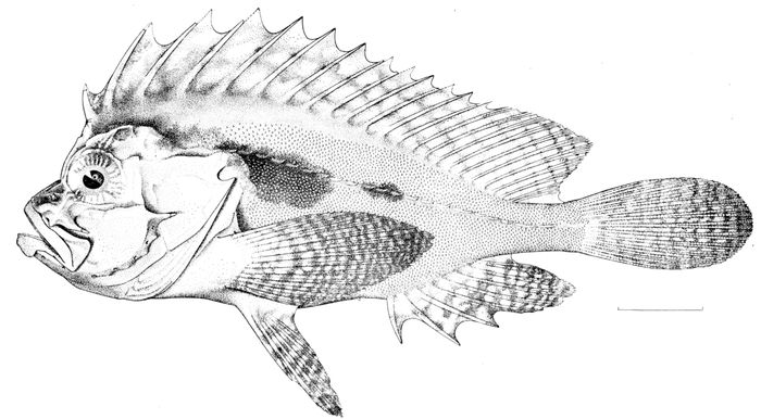 The Oniokose or Demon Stinger, Inimicus japonicus (Cuv. and Val.), from Wakanoura, Japan. From nature by Kako Morita.