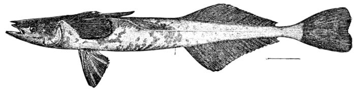 Other cod-like fishes have but two dorsals and one anal fin. Many of these occur in deep water. Among those living near shore, and therefore having economic value, we may mention a few of the more prominent. The codlings (Urophycis) are represented by numerous species on both shores of the Atlantic. Urophycis blennoides is common in the Mediterranean. Urophycis regius, on our South Atlantic coast, is said to exhibit electric powers in life, a statement that needs verification. In the Gulf of Mexico Urophycis floridanus is common. Farther north are the more important species Urophycis tenuis, called the white hake, and Urophycis chuss, the squirrel-hake. The ling (Molva molva) is found in deep water about the North Sea.